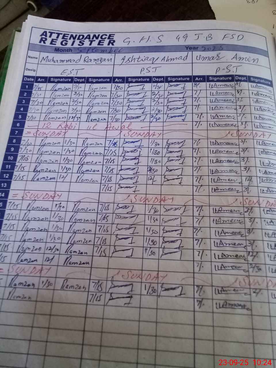 | CNIC | Full Name | Designation | R/C | Absence During Last Calender Month |