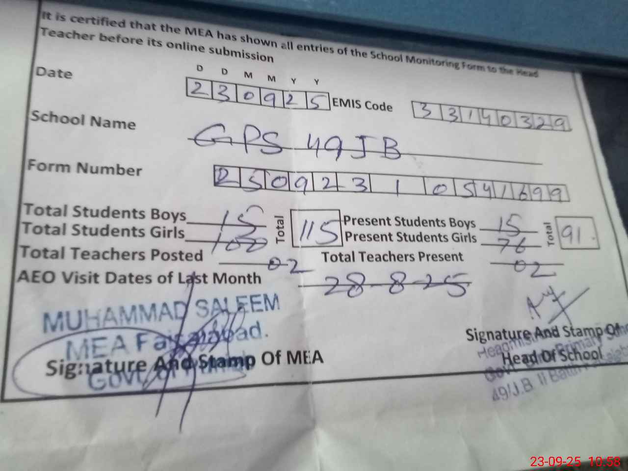 | EMIS Code: 33140329 | Name of School: GGPS 49 JB | |||