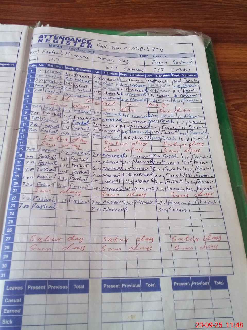| 33**** | Fa**** Hu**** | SST | Regular | 0 | 0 | 0 | 0 | 0 | 0 | 0 | 0 | 0 | Absent (Un-Authorized) |