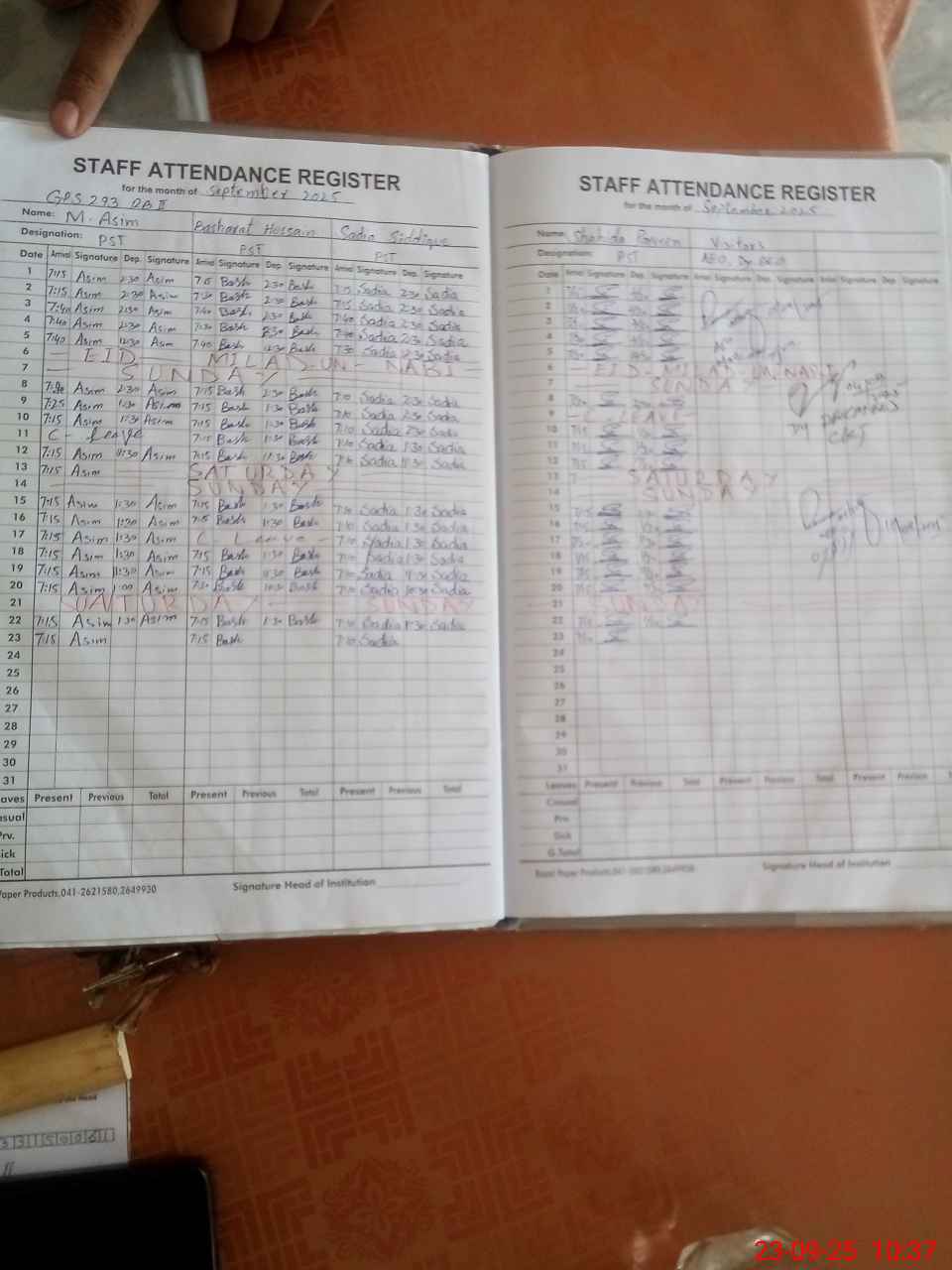 | Name: NO**** MU**** Designation: (School Headmaster's/Headmistress's) PST Phone/Cell Number: 03**** |