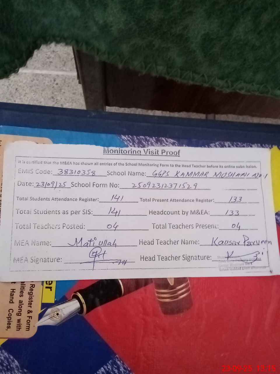 | EMIS Code: 38310358 | Name of School: GGPS KAMMAR MUSHANI NO.1 | |||