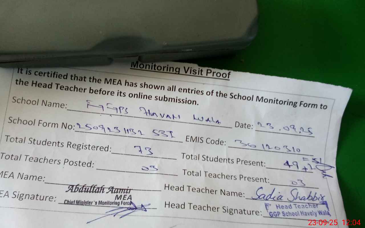 | EMIS Code: 36120310 | Name of School: GGPS HAVALI WALA SHUJABAD | |||