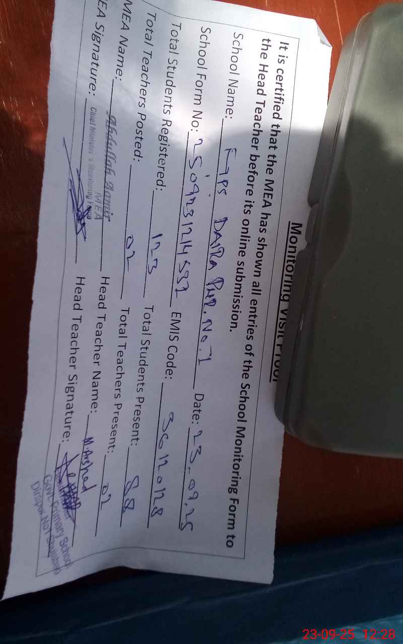 | EMIS Code: 36120128 | Name of School: GPS DAIRA PUR 1 P/O SIKANDARABAD SHUJABAD | |||