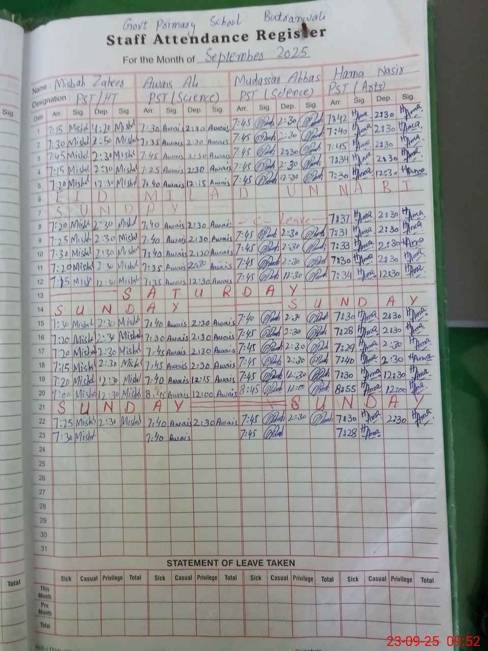 | Leave | Duty | Absent | Maternity | Medical | Ex- Pak |