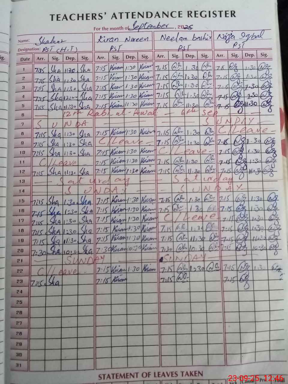 | 36**** | Mu**** Ar**** | CHAUKIDAR | 0 | 0 | 0 | 0 | 0 | 0 | 0 | 0 | 0 | Absent (Un-Authorized) | |