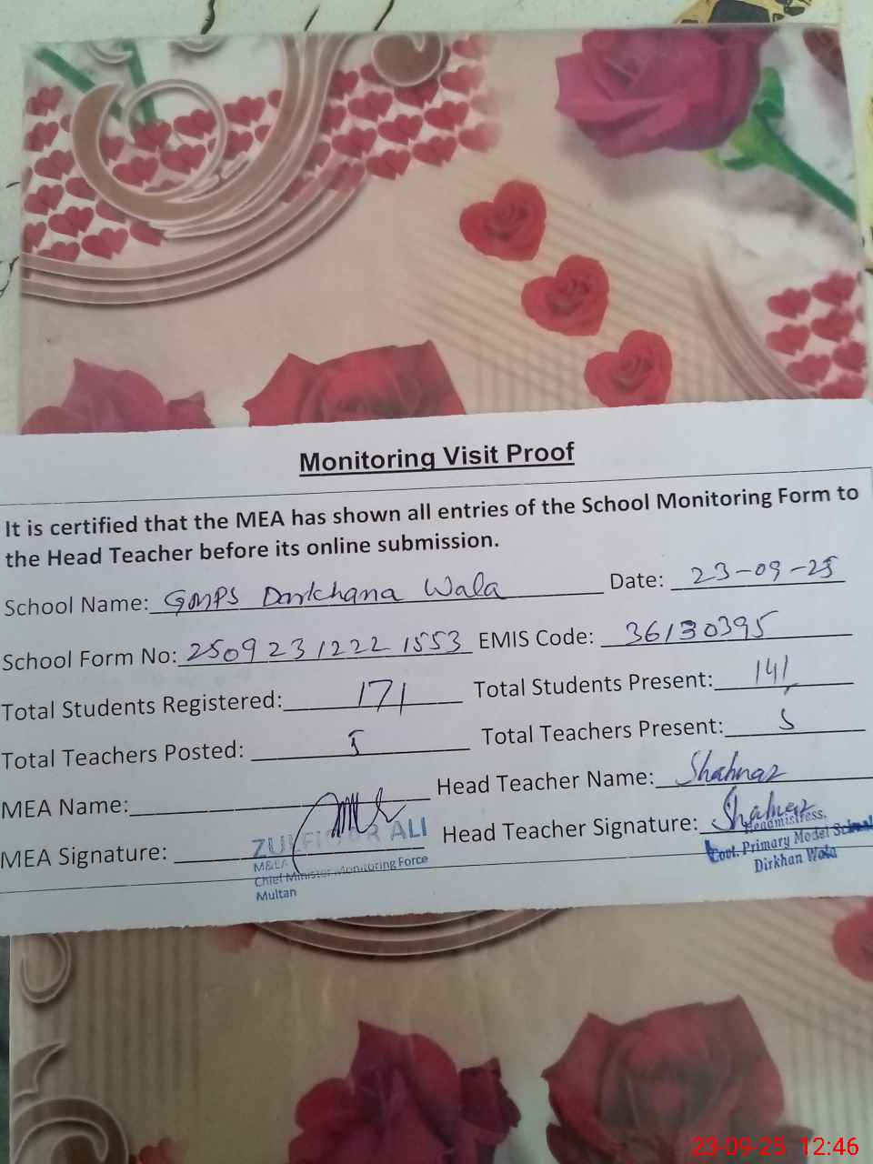 | EMIS Code: 36130395 | Name of School: GMPS DARKHAN WALA | |||