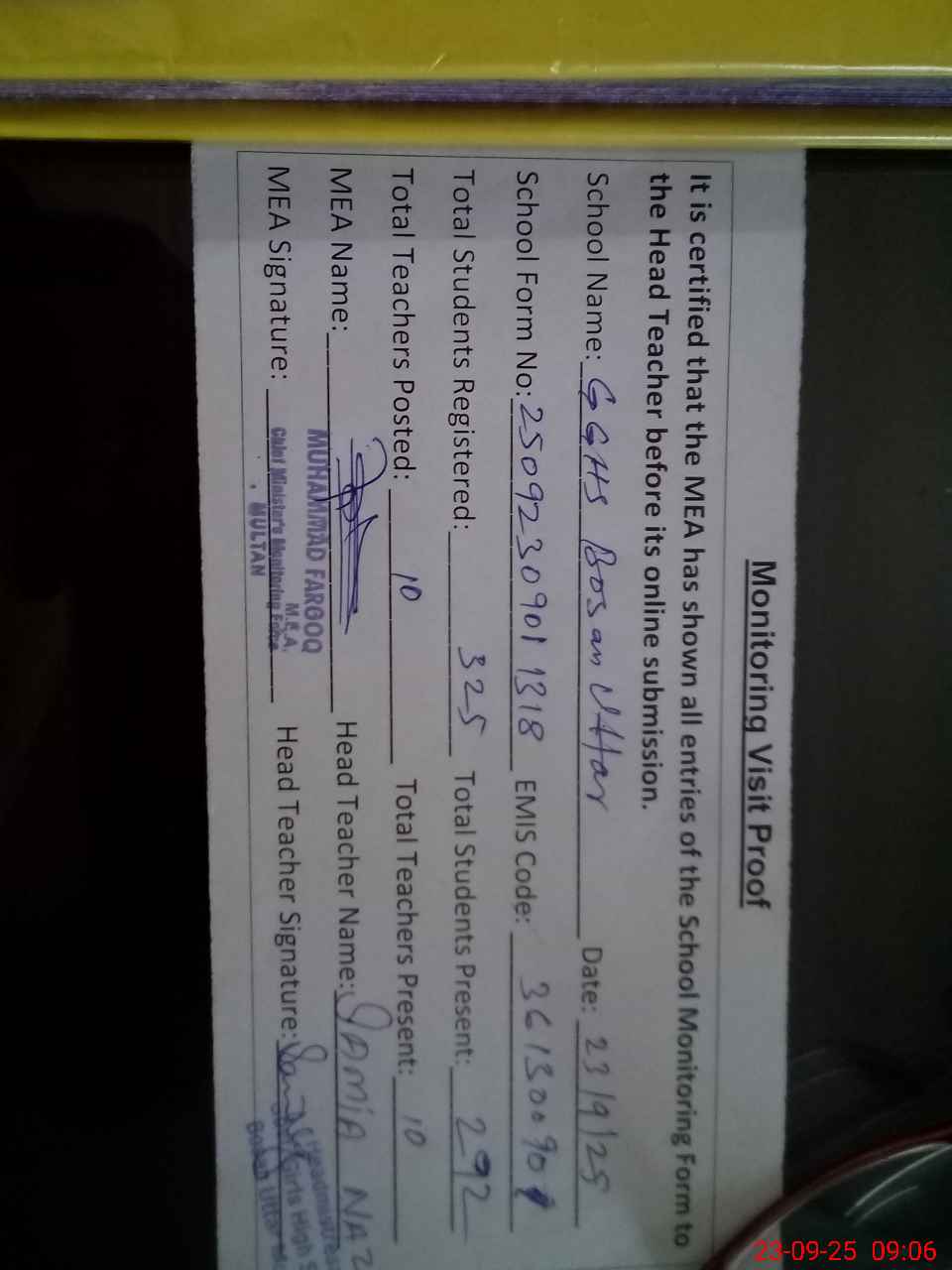 | EMIS Code: 36130090 | Name of School: GGHS BOSAN UTTAR | |||