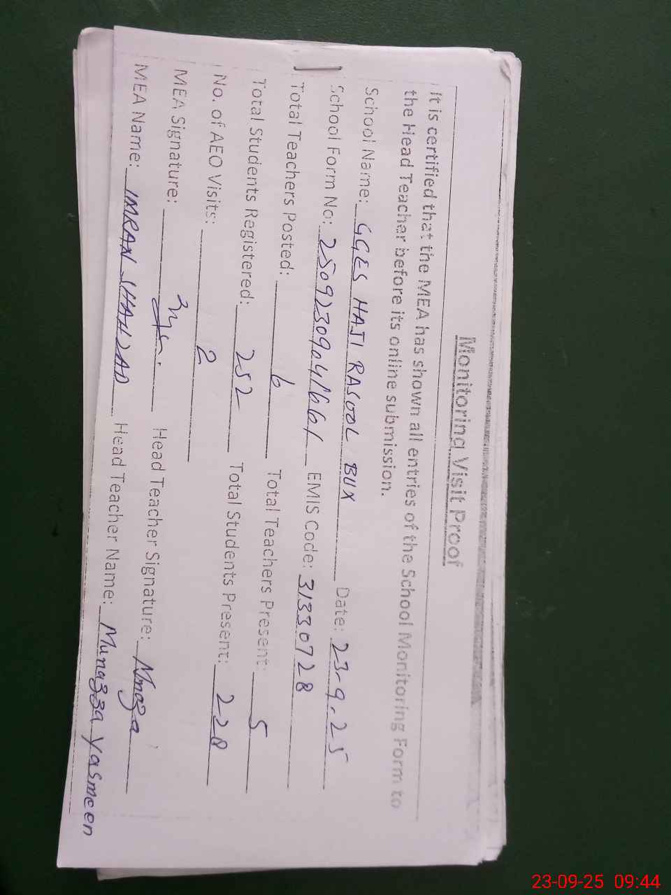 | EMIS Code: 31330728 | Name of School: GGES HAJI RASOOL BAKHSH | |||