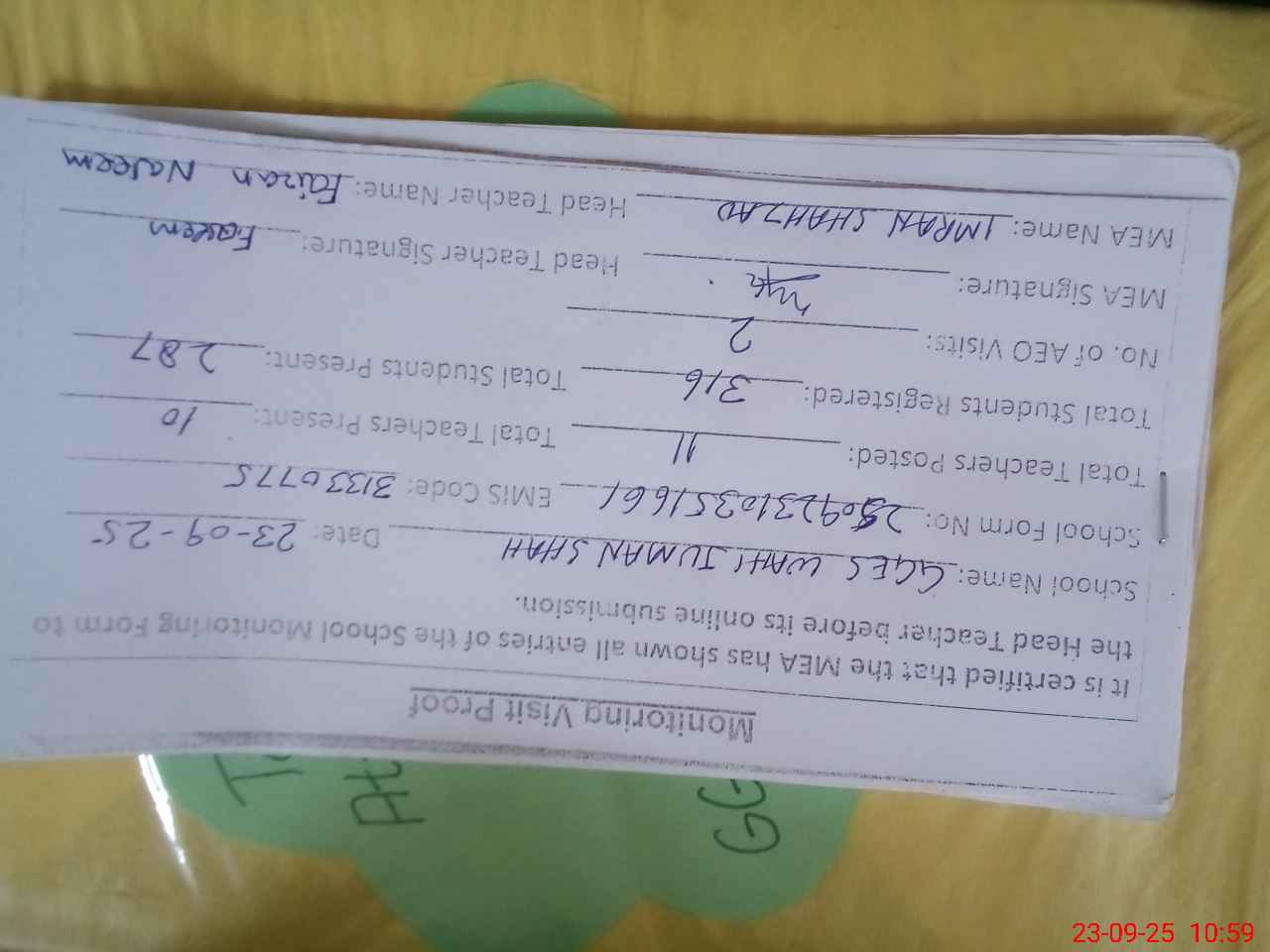 | EMIS Code: 31330775 | Name of School: GGES WAHI JUMAN SHAH | |||