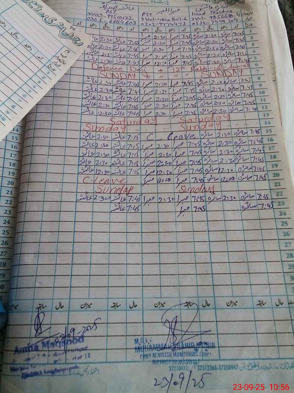 | Name: SA**** AS**** Designation: (School Headmaster's/Headmistress's) PST/PTC/JV Phone/Cell Number: 03**** |