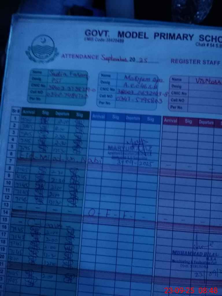 | Name: SA**** FA**** Designation: (School Headmaster's/Headmistress's) PST (SCI-MATH) Phone/Cell Number: 03**** |