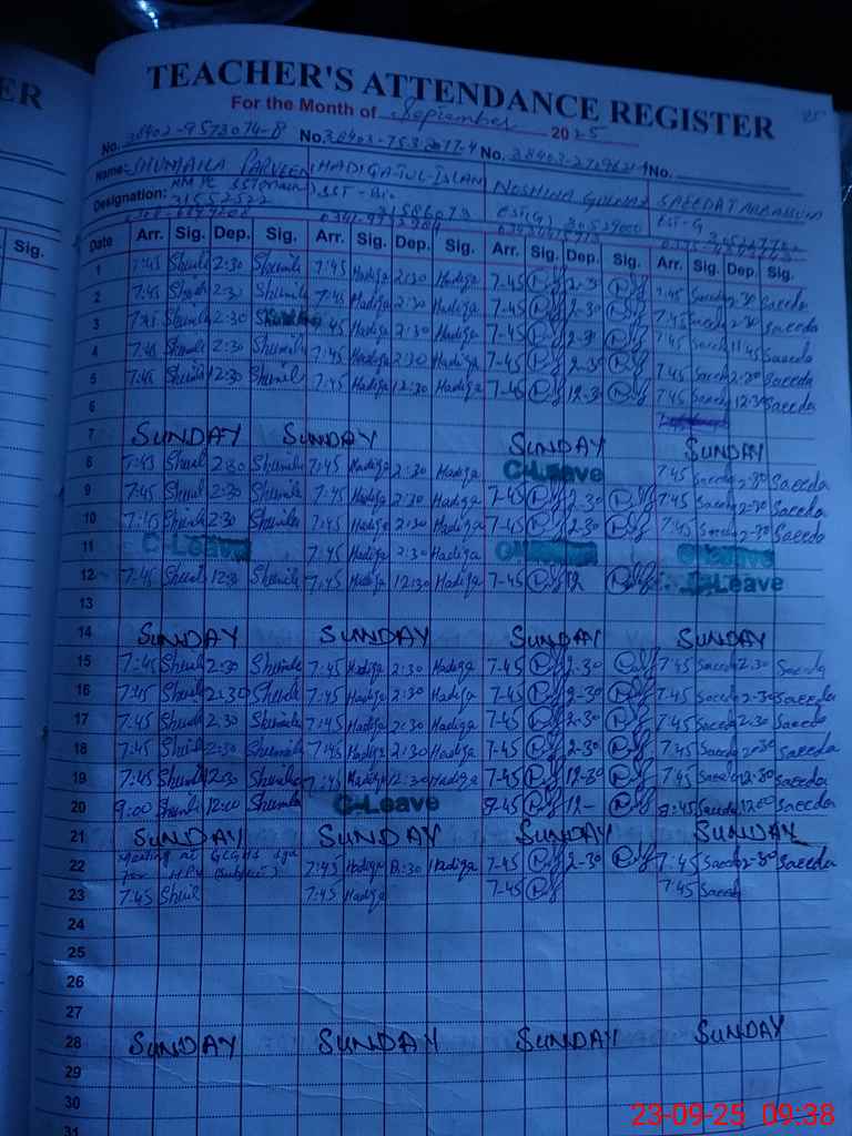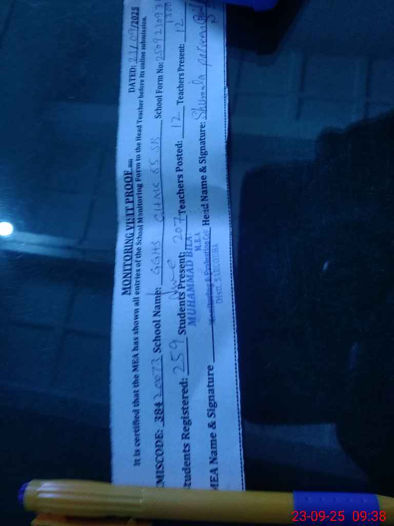 | Attendance Register | Head Teacher | MEA with School | Visit Proof |