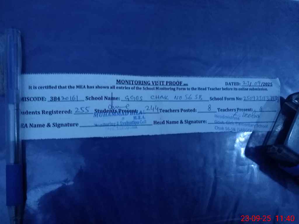 | EMIS Code: 38420161 | Name of School: GGES CHAK NO.56 SB | |||