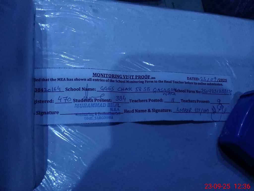 | EMIS Code: 38420164 | Name of School: GGES QASBAN WALA 58 SB | |||