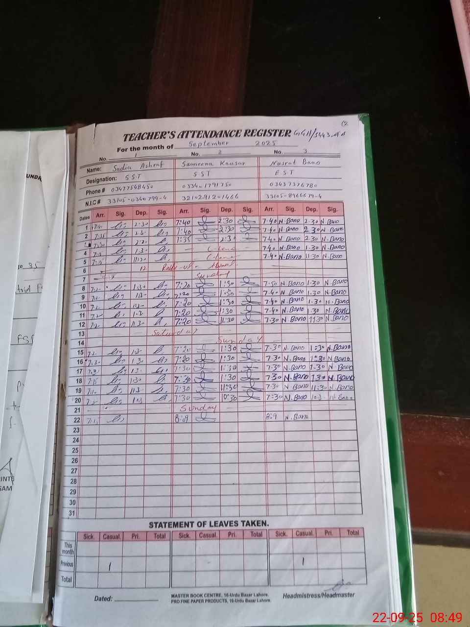 | Name: SA**** AS**** Designation: (School Headmaster's/Headmistress's) SST (GENERAL) Phone/Cell Number: 03**** |