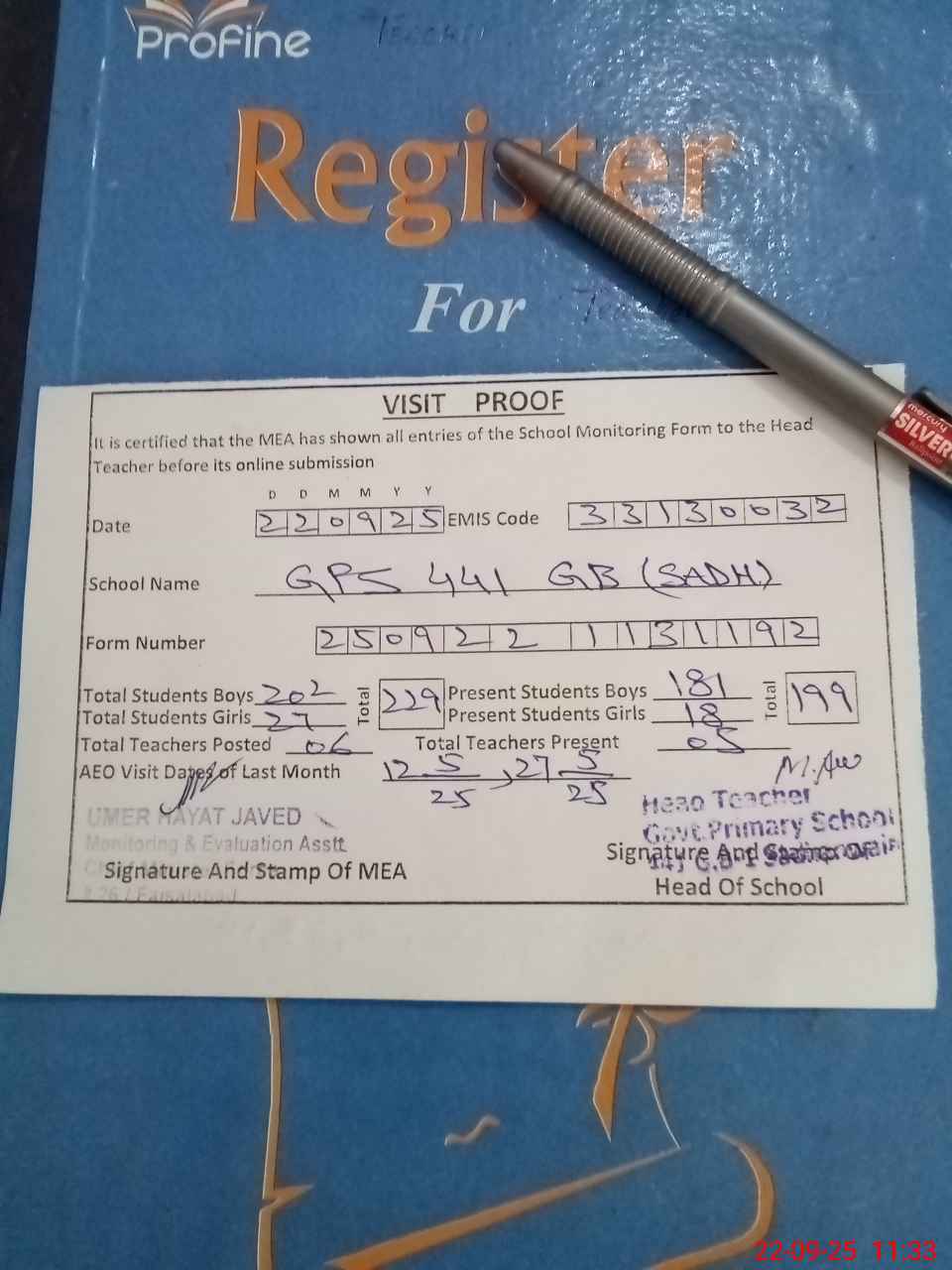 | EMIS Code: 33130032 | Name of School: GPS CHAK 441 GB SADH SAMUNDRI | |||