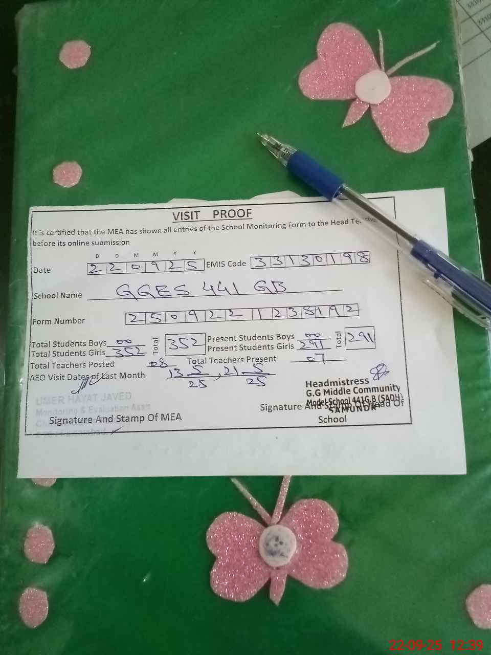 | Certified that this School was Inspected by the Undersigned MEA/DMO Today and the Information Stated Above is as Per Record. | |||||