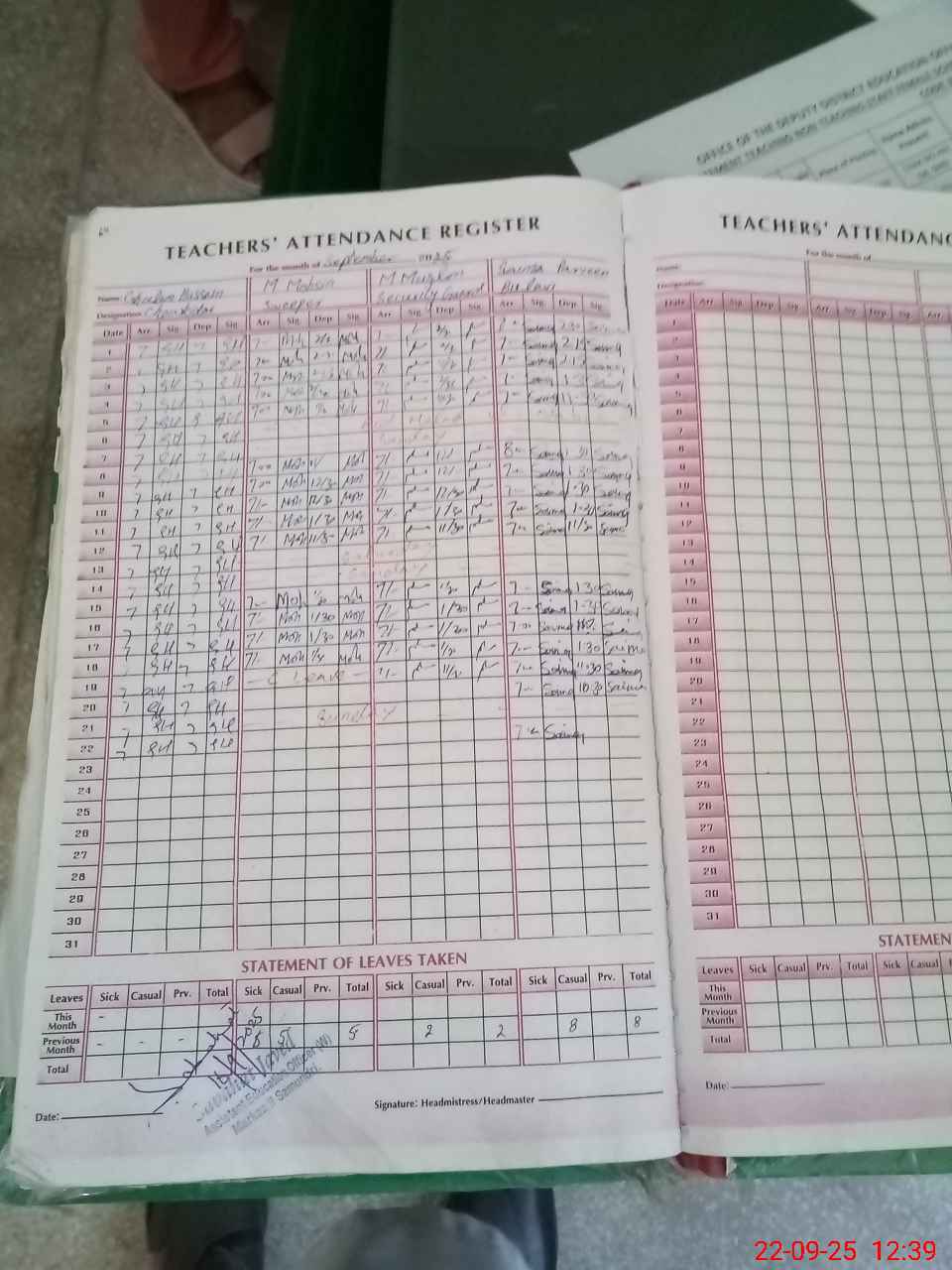 | 33**** | MU**** MU**** | S G | Regular | 0 | 0 | 0 | 0 | 0 | 0 | 0 | 0 | 0 | Absent (Un-Authorized) |