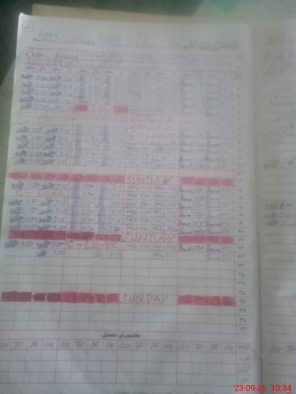 | CNIC | Full Name | Designation | R/C | Absence During Last Calender Month |