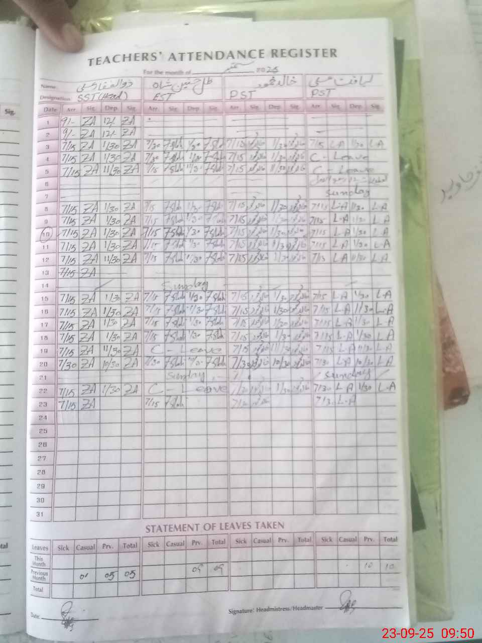 | 33**** | Mu**** As**** | NAIB QASID | 0 | 0 | 0 | 0 | 0 | 0 | 0 | 0 | 0 | Absent (Un-Authorized) | |