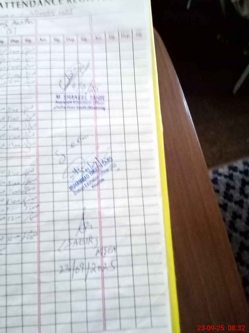| CNIC | Full Name | Designation | R/C | Absence during last cal. month |