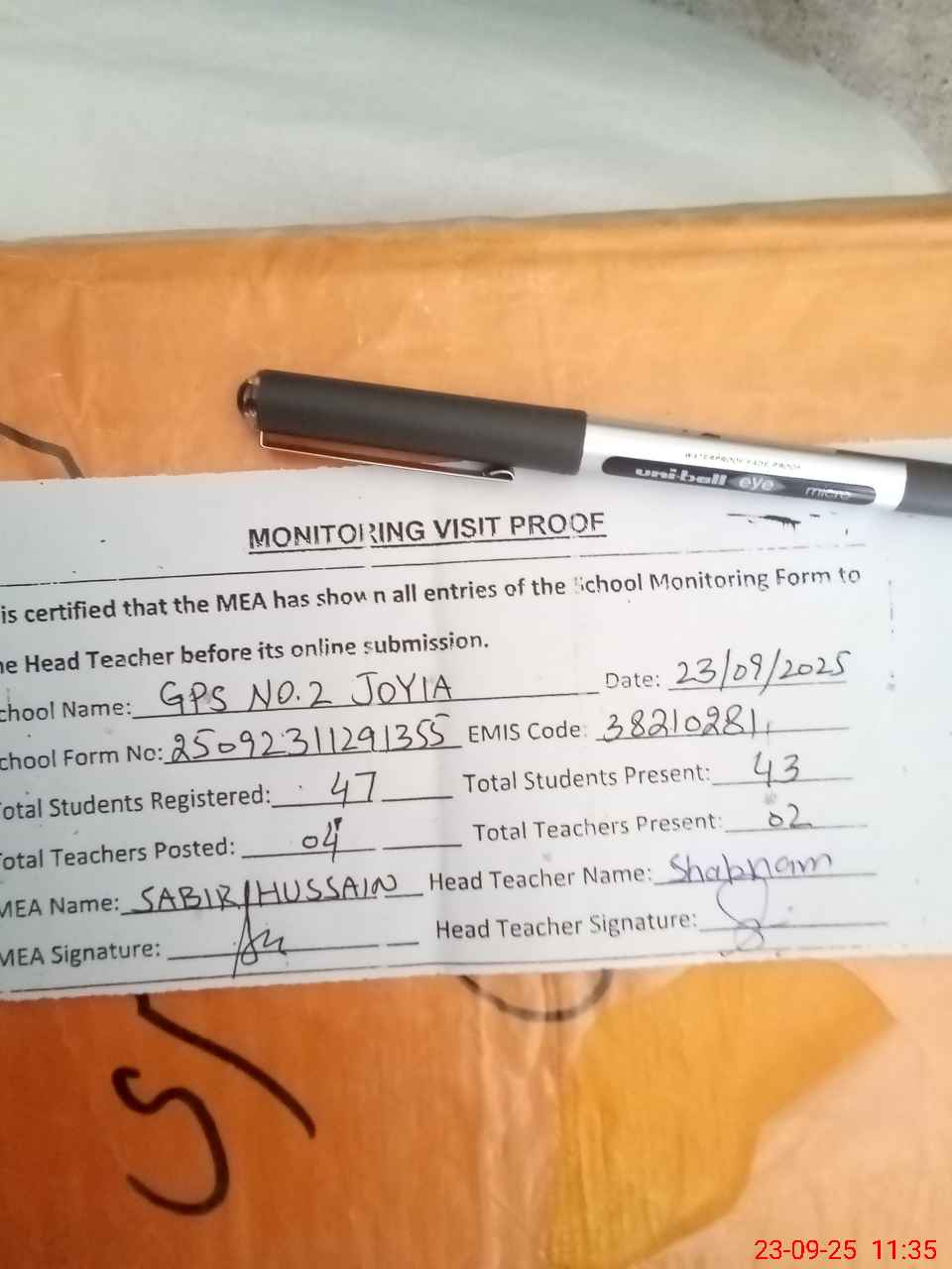 | EMIS Code: 38210281 | Name of School: GPS NO. 2 JOYIA | |||