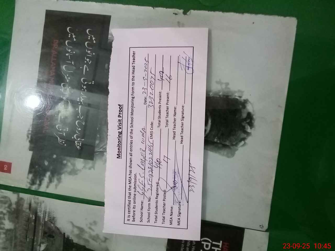 | Certified that this School was Inspected by the Undersigned MEA/DMO Today and the Information Stated Above is as Per Record. | |||||