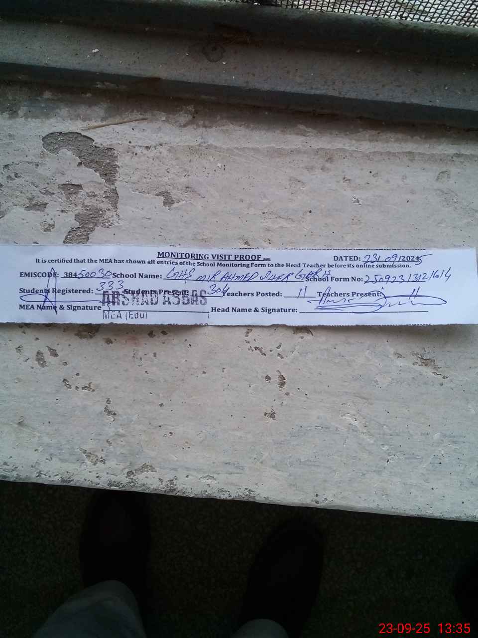 | EMIS Code: 38450030 | Name of School: GHS MIR AHMED SHER GARH | |||