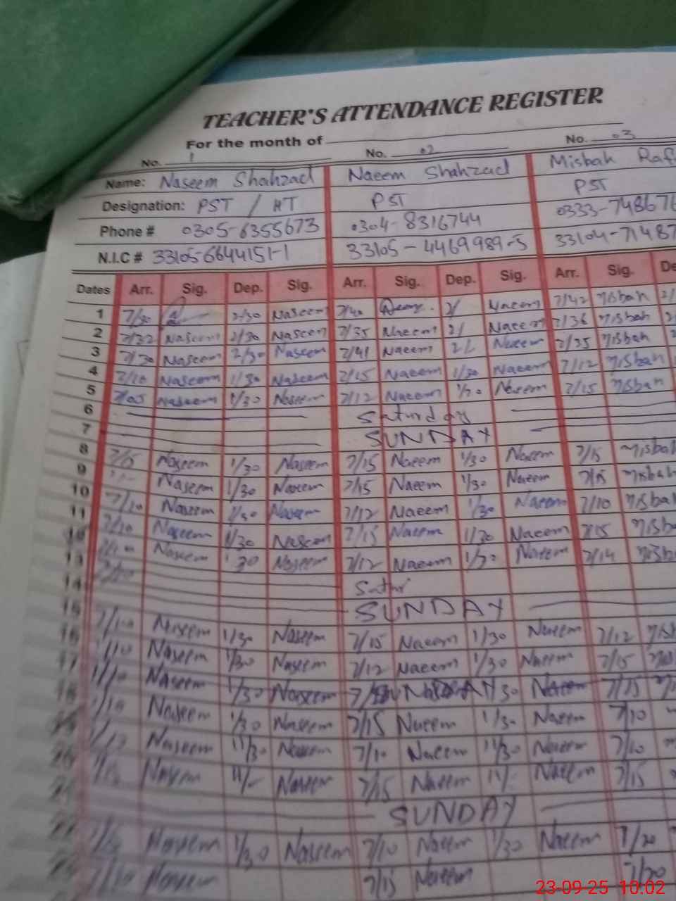 | Name: AB**** MA**** Designation: (School Headmaster's/Headmistress's) PST Phone/Cell Number: 03**** |