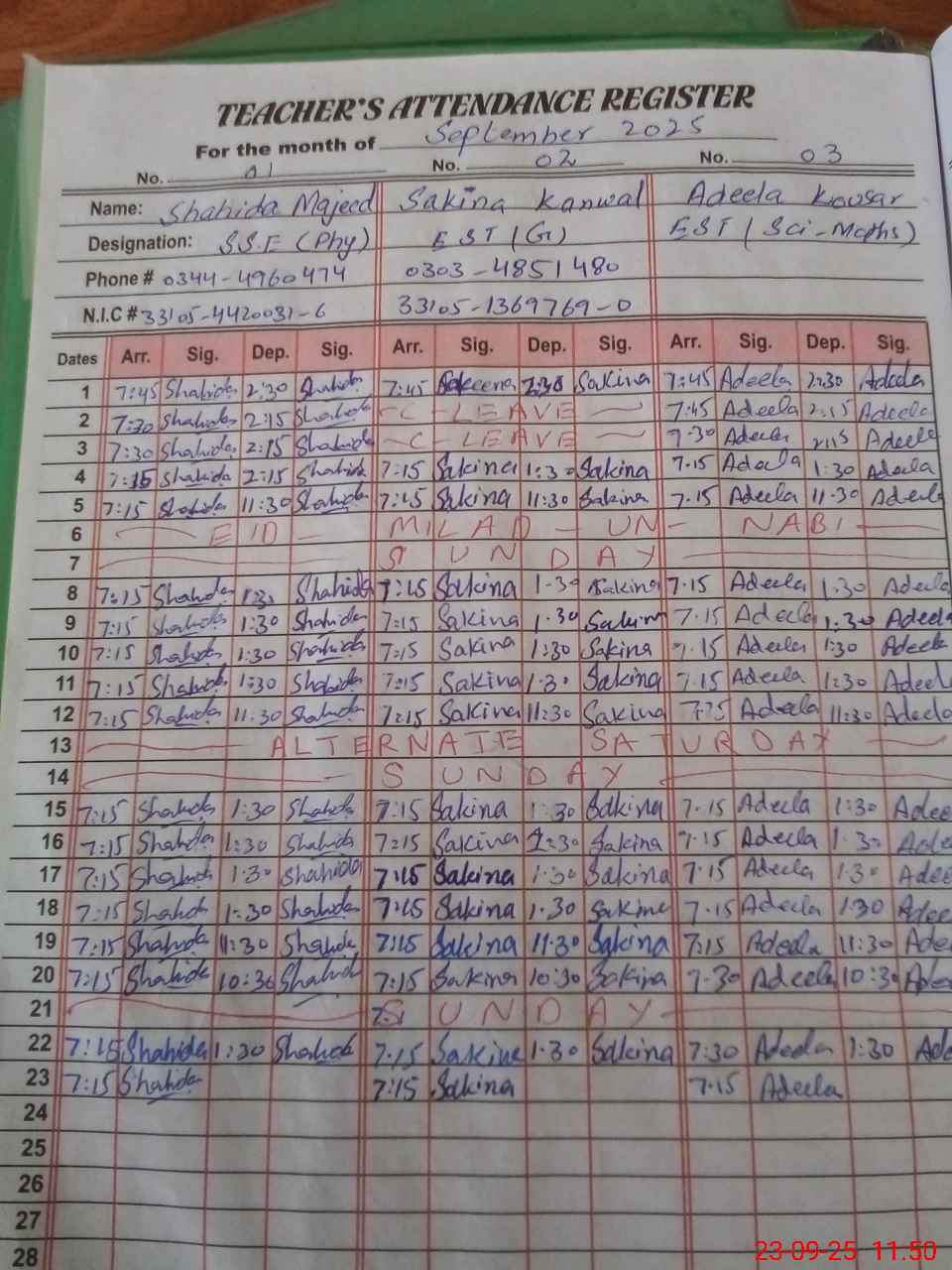 | Name: SH**** MA**** Designation: (School Headmaster's/Headmistress's) SSE (SCIENCE ) Phone/Cell Number: 03**** |