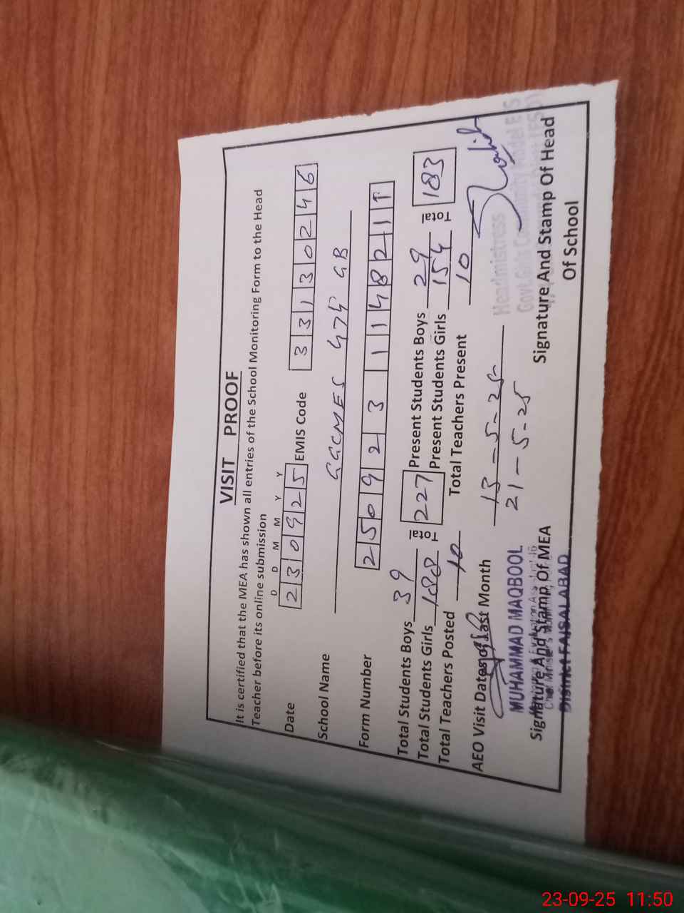 | EMIS Code: 33130246 | Name of School: GGCMES CHAK 474 GB MAMUNKANJAN | |||