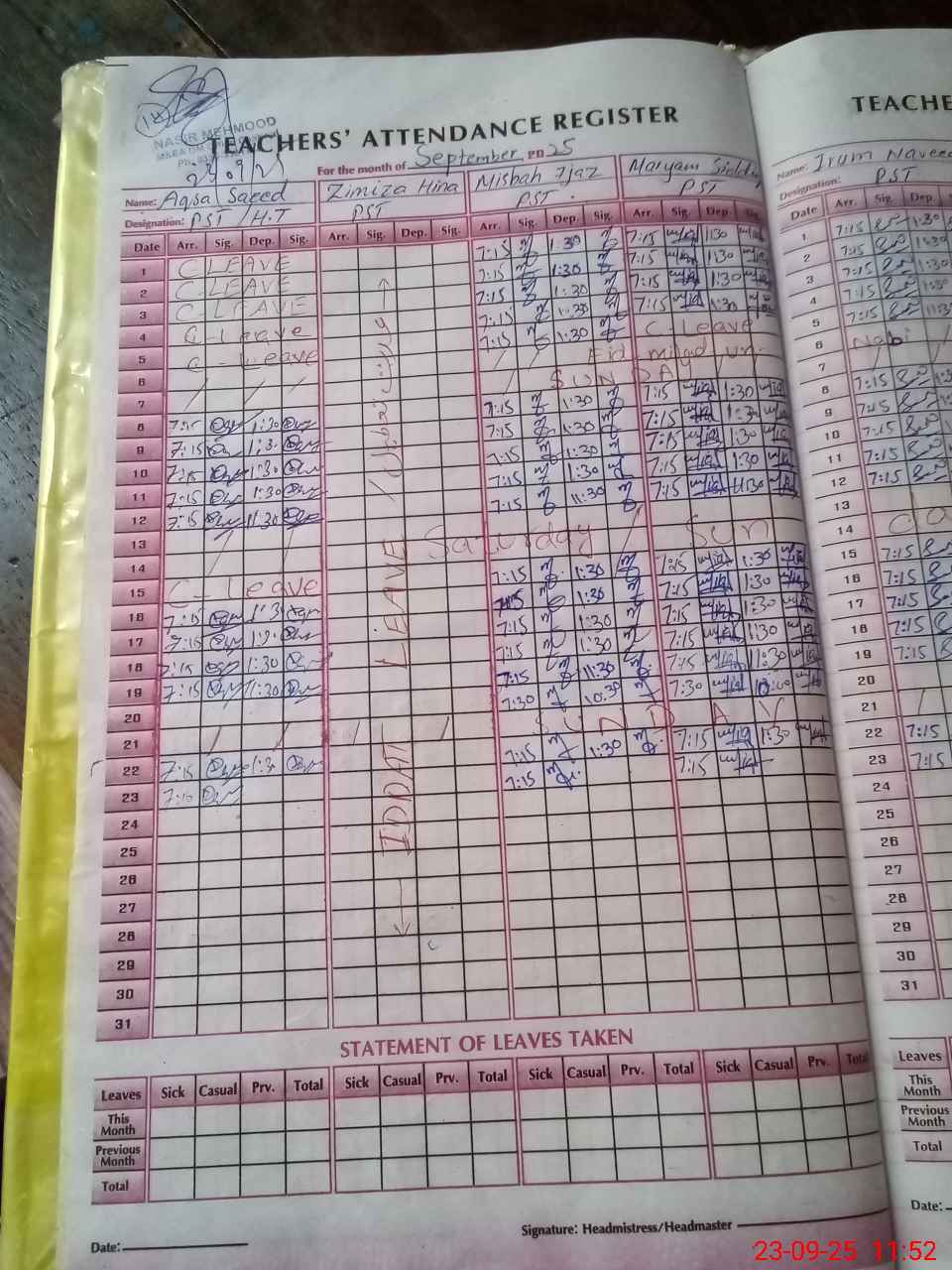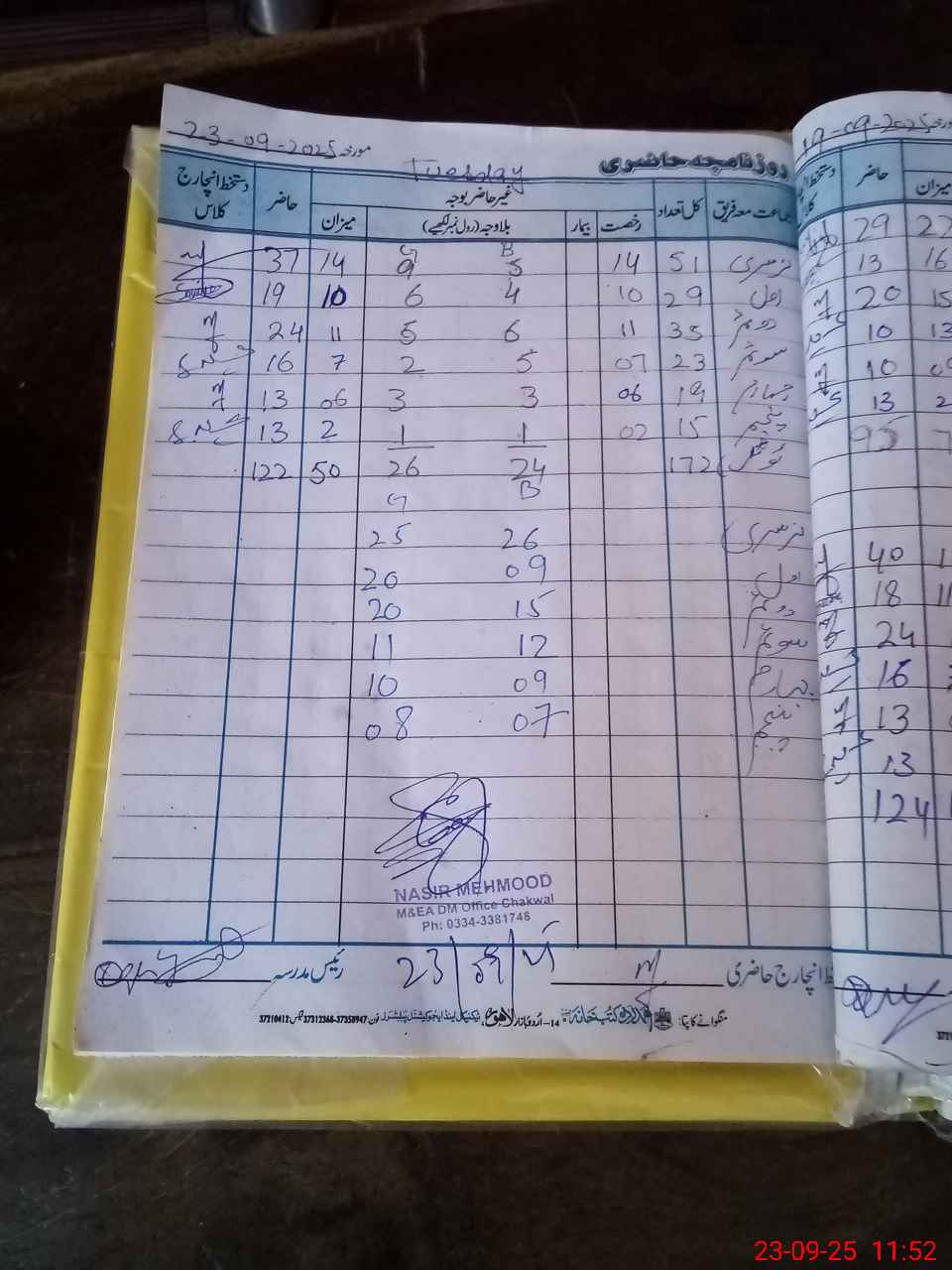 | Name: Aq**** Sa**** Designation: (School Headmaster's/Headmistress's) HEADMISTRESS Phone/Cell Number: 03**** |