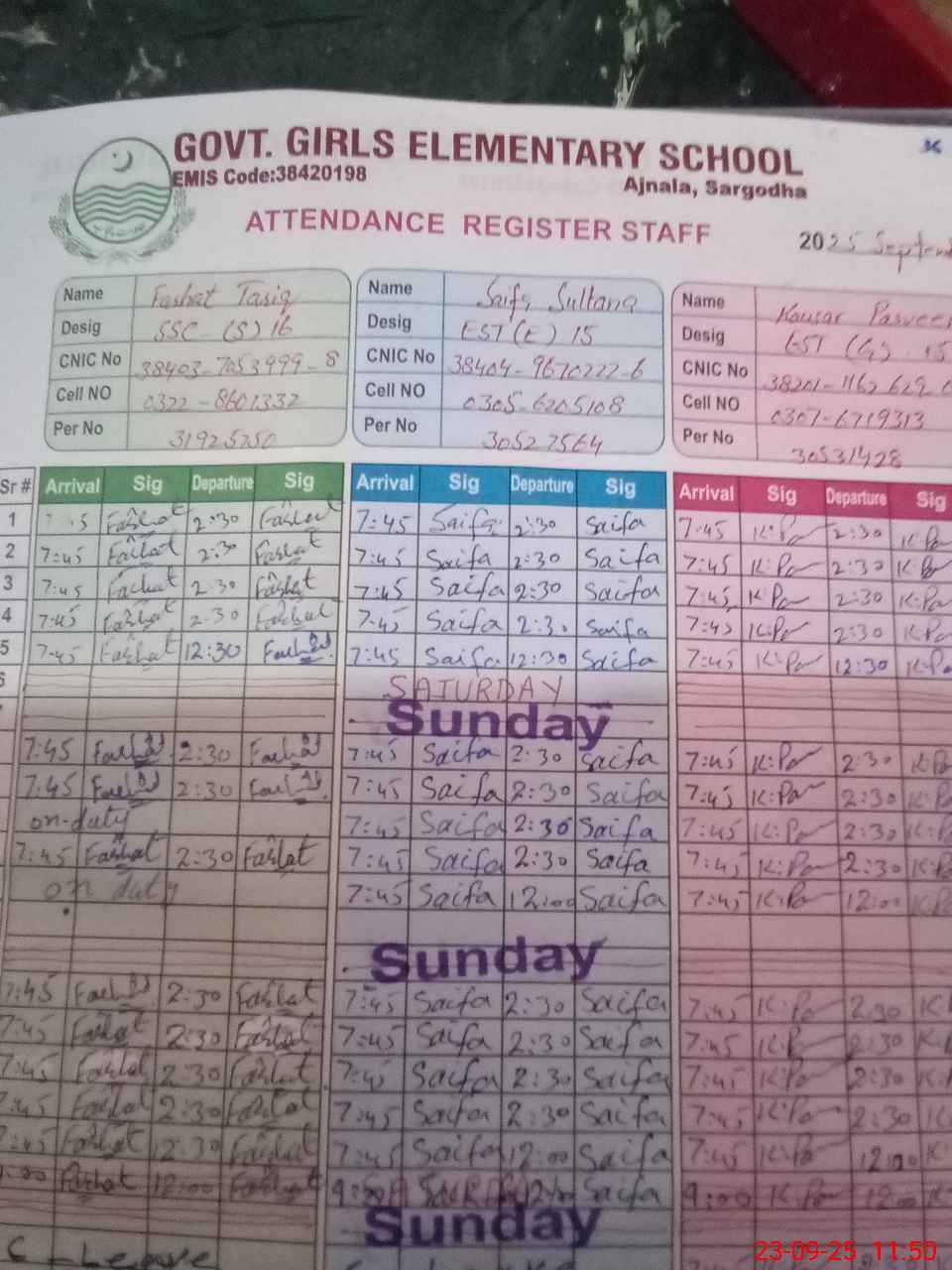 | Name: FA**** TA**** Designation: (School Headmaster's/Headmistress's) S.S.E.(C S) Phone/Cell Number: 03**** |