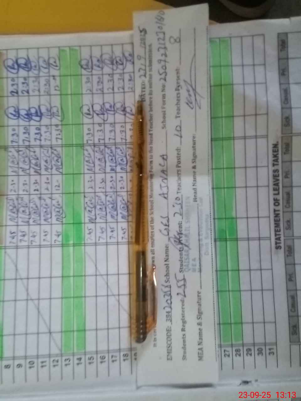 | Attendance Register | Head Teacher | MEA with School | Visit Proof |