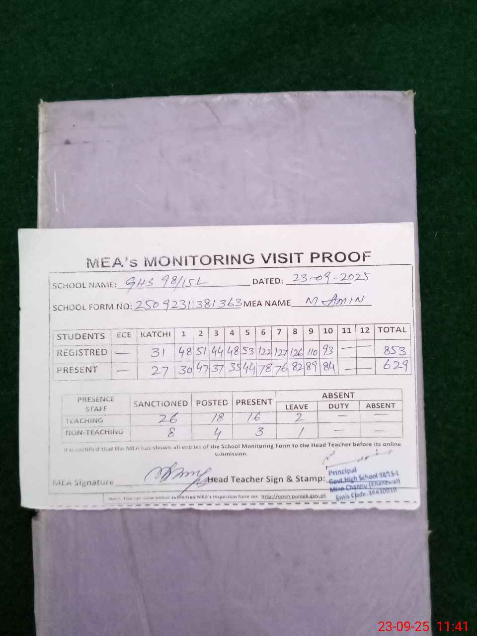 | EMIS Code: 36430010 | Name of School: GHS 98/15-L, MIAN CHUNNU | |||