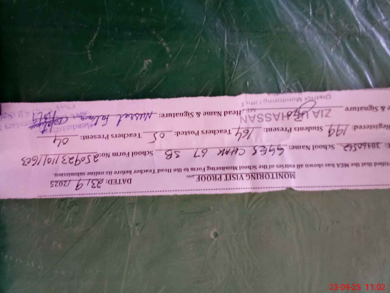 | Name: NU**** FA**** Designation: (School Headmaster's/Headmistress's) EST Phone/Cell Number: 03**** |