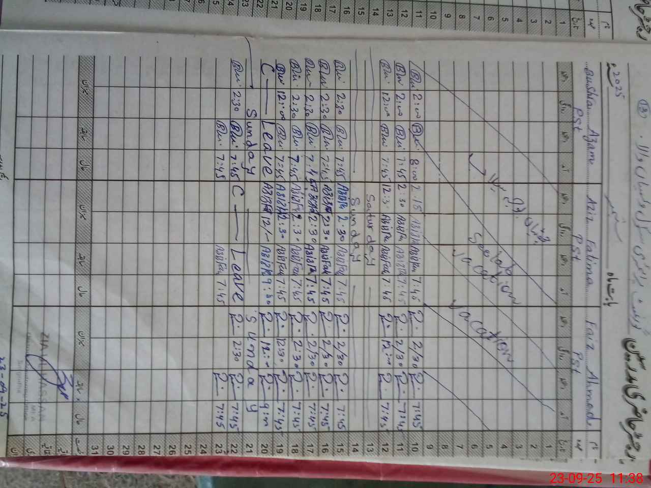 | CNIC | Full Name | Designation | R/C | Absence During Last Calender Month |