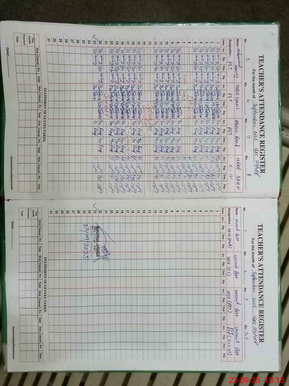 | Remarks (Use Separate Page if Required): LESSON PLANS ARE NOT AVAILABLE WASH CLUB LAST ENTRY IS ON 09 DECEMBER 2024 AFTER THIS NO ENTRY SCHOOL HEALTH AND NUTRITION SUPERVISOR LAST VISIT ON 11 OCTOBER 2024 AFTER THIS NO VISIT RANDOM CLASS SIX IS NOW PASSED OUT FROM THIS SCHOOL | |||||