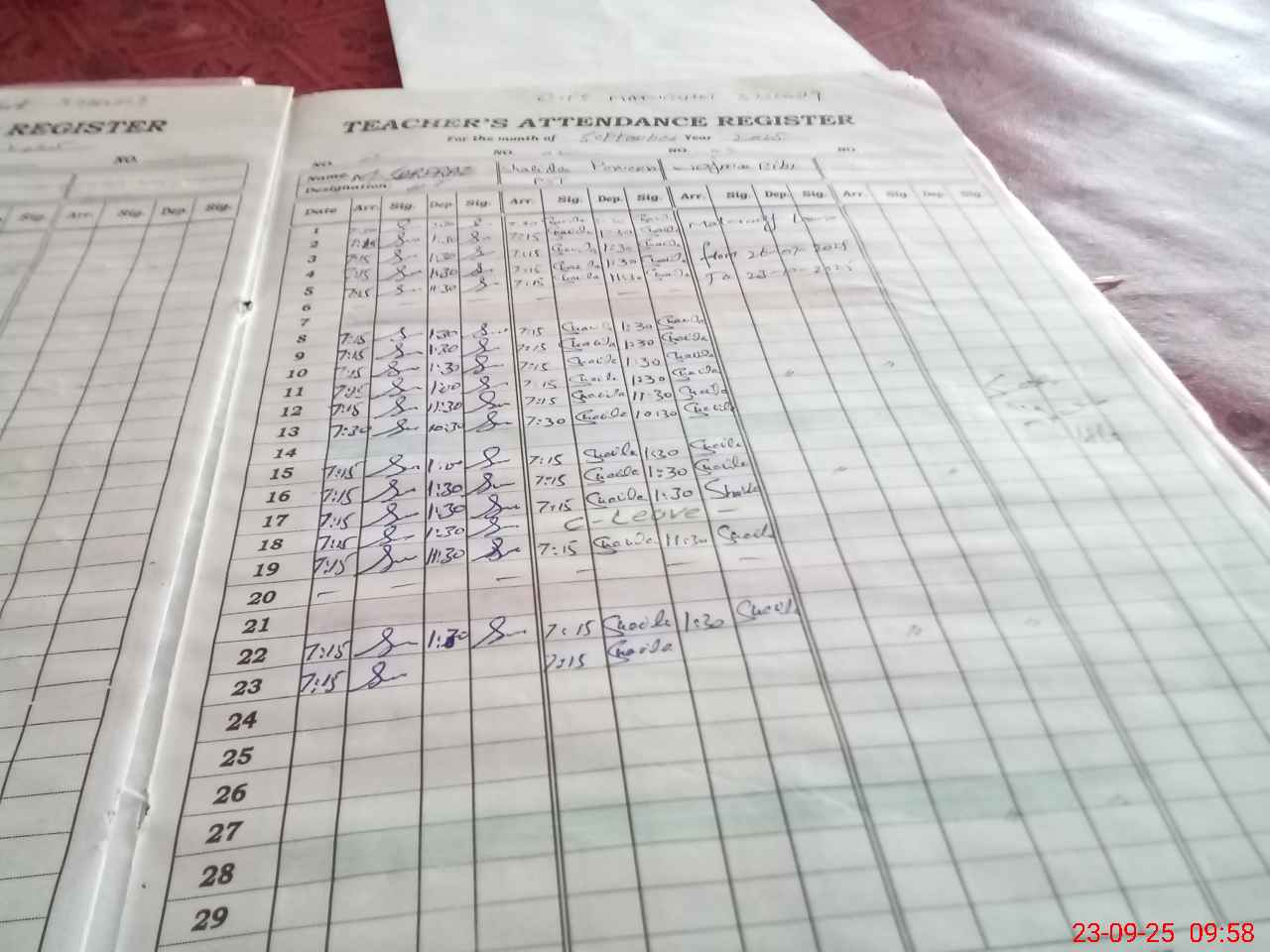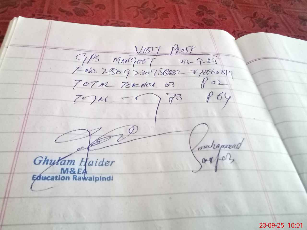 | Attendance Register | Head Teacher | MEA with School | Visit Proof |
