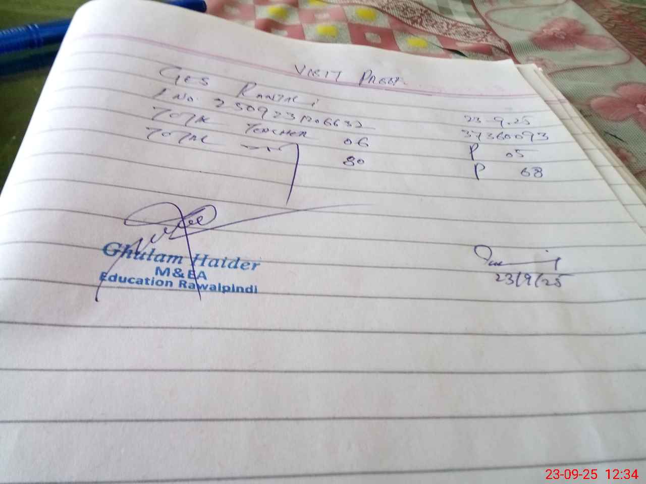 | Attendance Register | Head Teacher | MEA with School | Visit Proof |