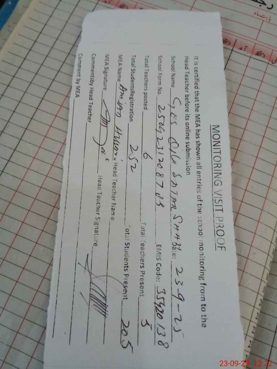 | EMIS Code: 35420138 | Name of School: GES QILA SATAR SHAH | |||