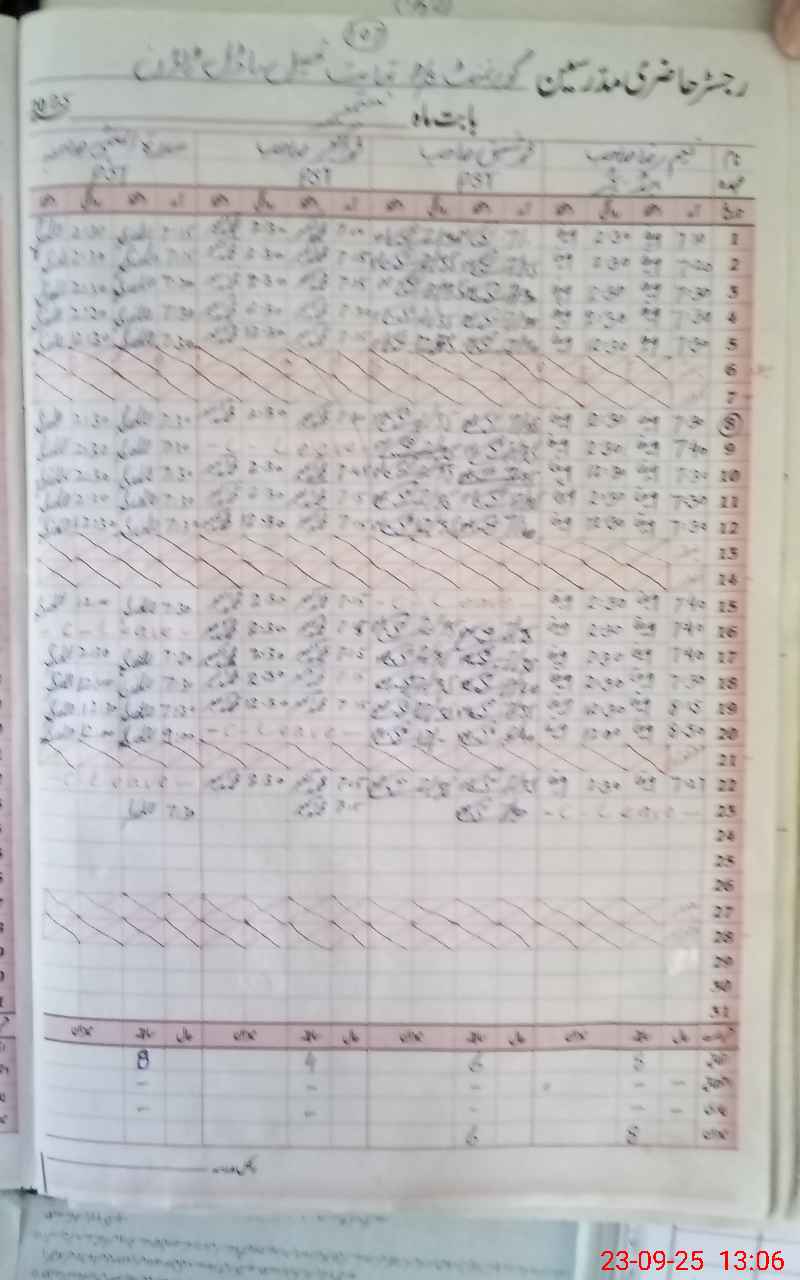 | CNIC | Full Name | Designation | R/C | Absence During Last Calender Month |