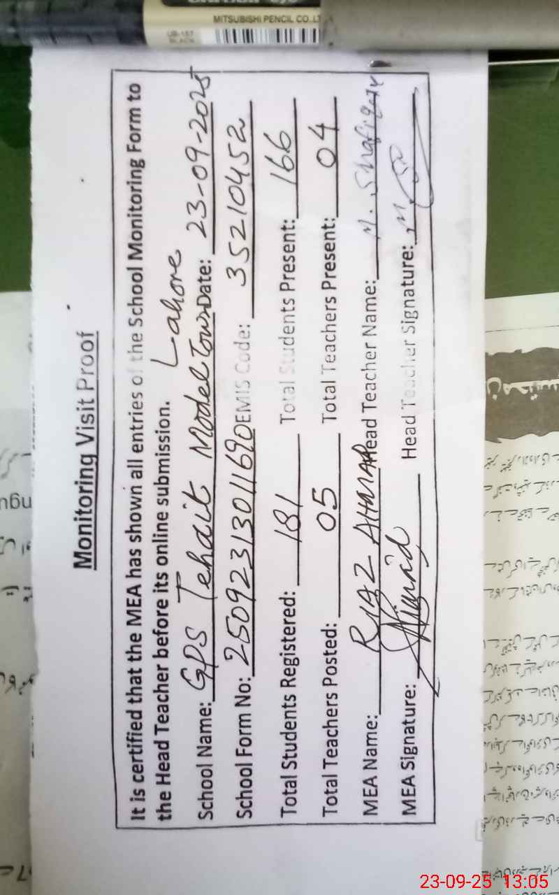 | Attendance Register | Head Teacher | MEA with School | Visit Proof |