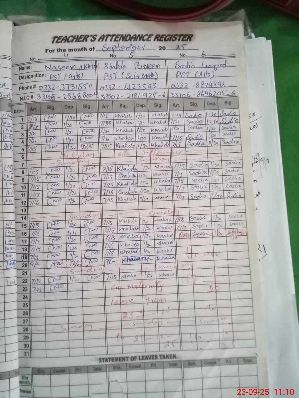 | 33**** | Kh**** Pe**** | PST | Regular | 0 | 0 | 0 | 0 | 0 | 0 | 0 | 0 | 0 | Maternity |
