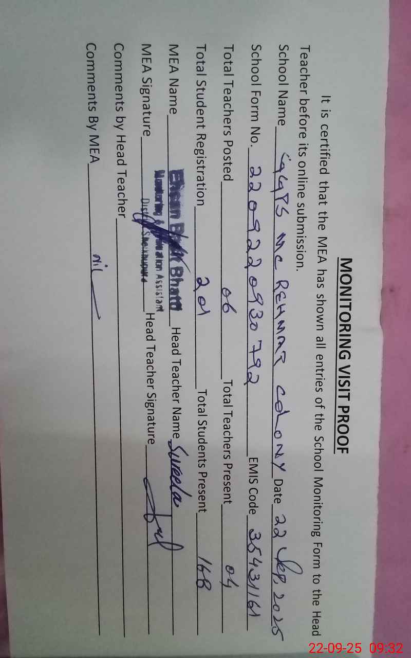 | EMIS Code: 35431161 | Name of School: GGPS MC REHMAT COLONY | |||