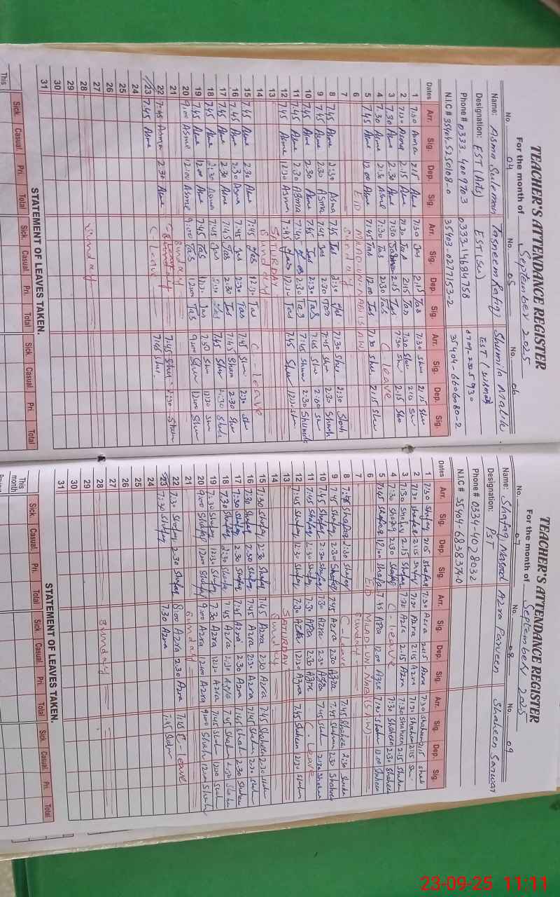 | Name: So**** No**** Designation: (School Headmaster's/Headmistress's) SST ( General ) Phone/Cell Number: 03**** |