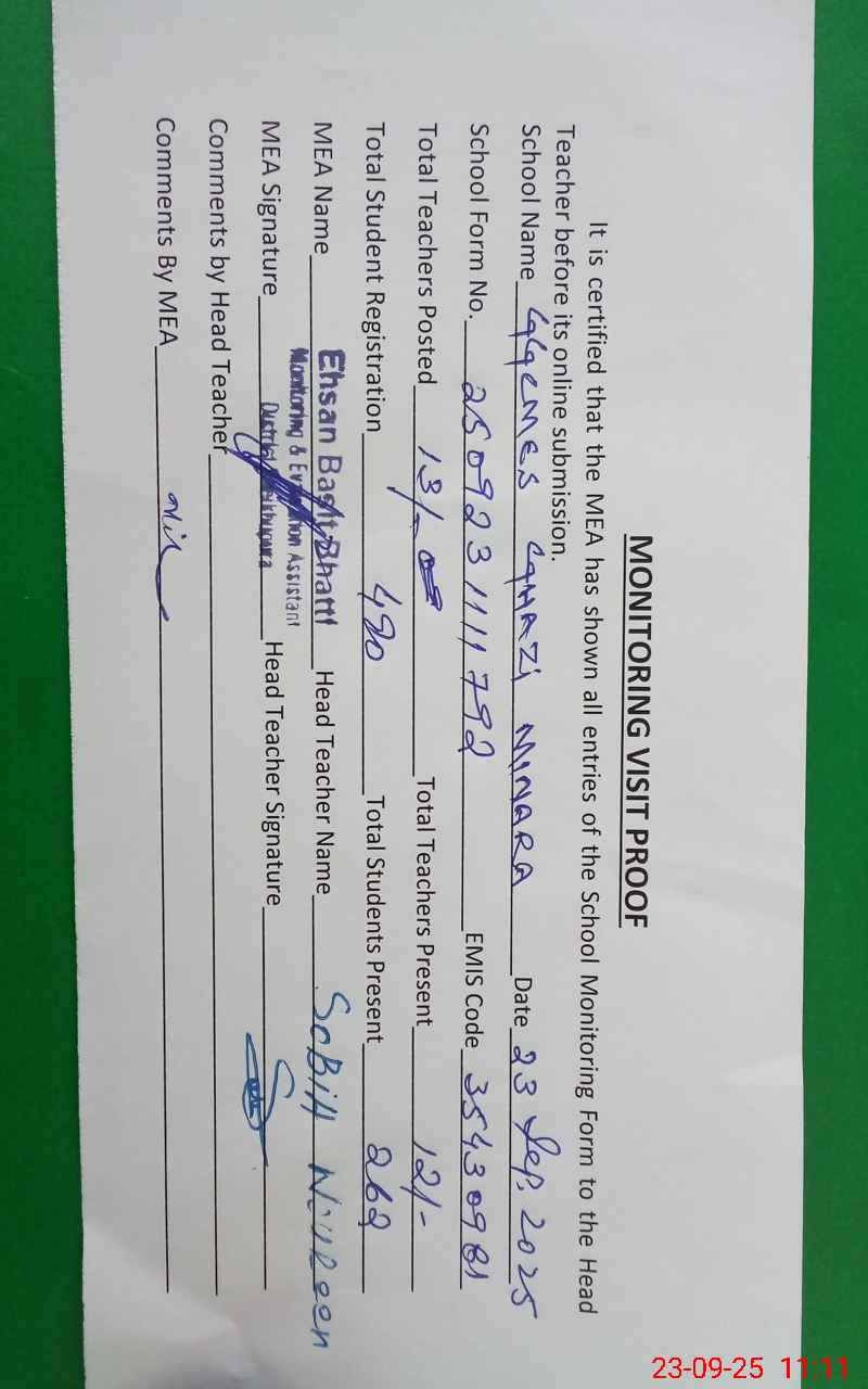 | EMIS Code: 35430981 | Name of School: GGCMES GHAZI MINARA | |||