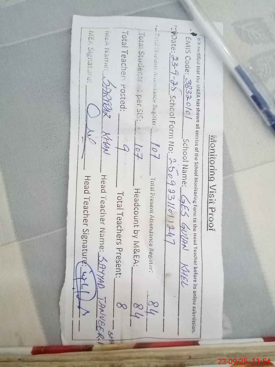 | EMIS Code: 38320101 | Name of School: GES GULLAN KHEL | |||