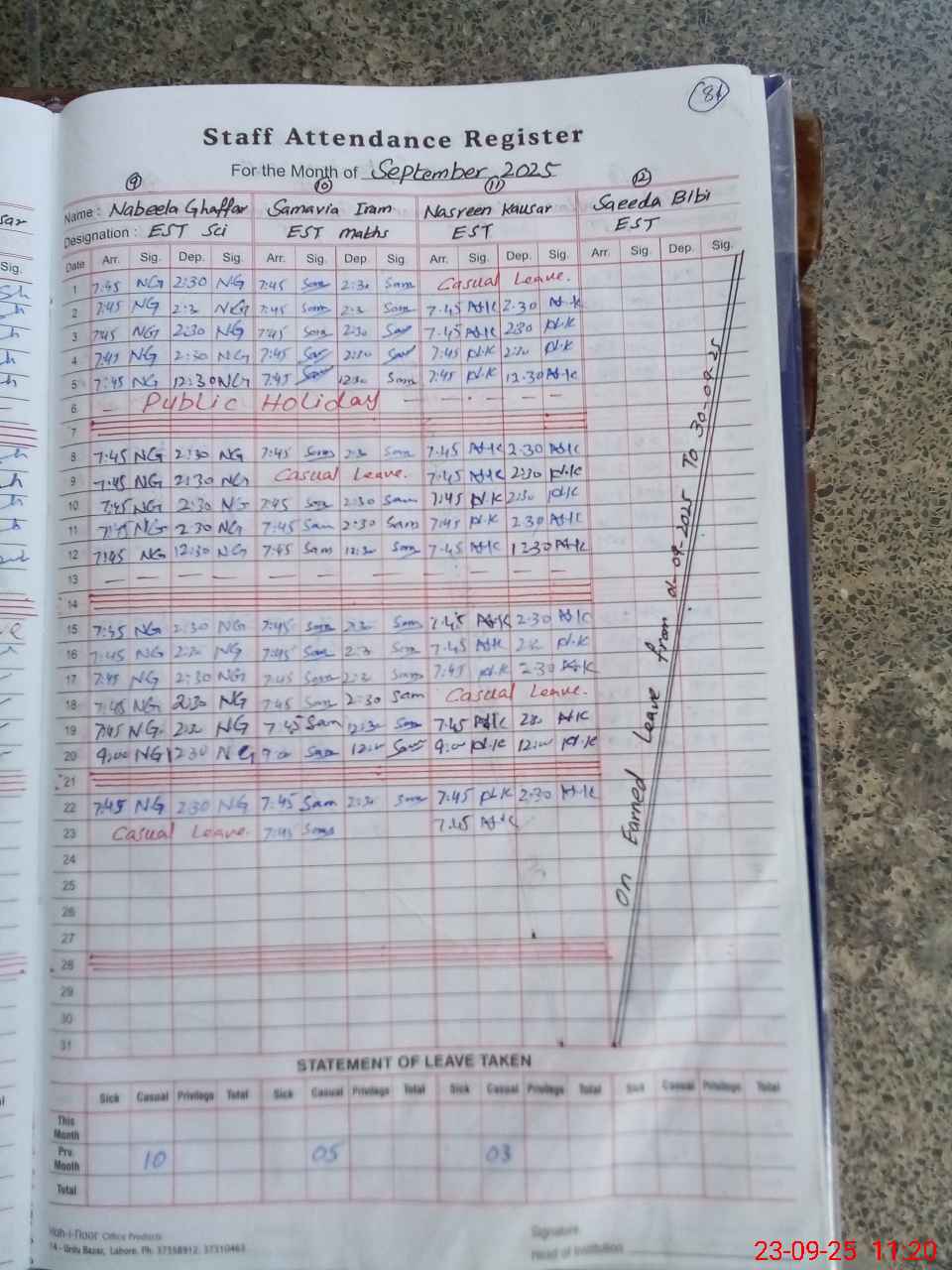 | Leave | Duty | Absent | Maternity | Medical | Ex- Pak |