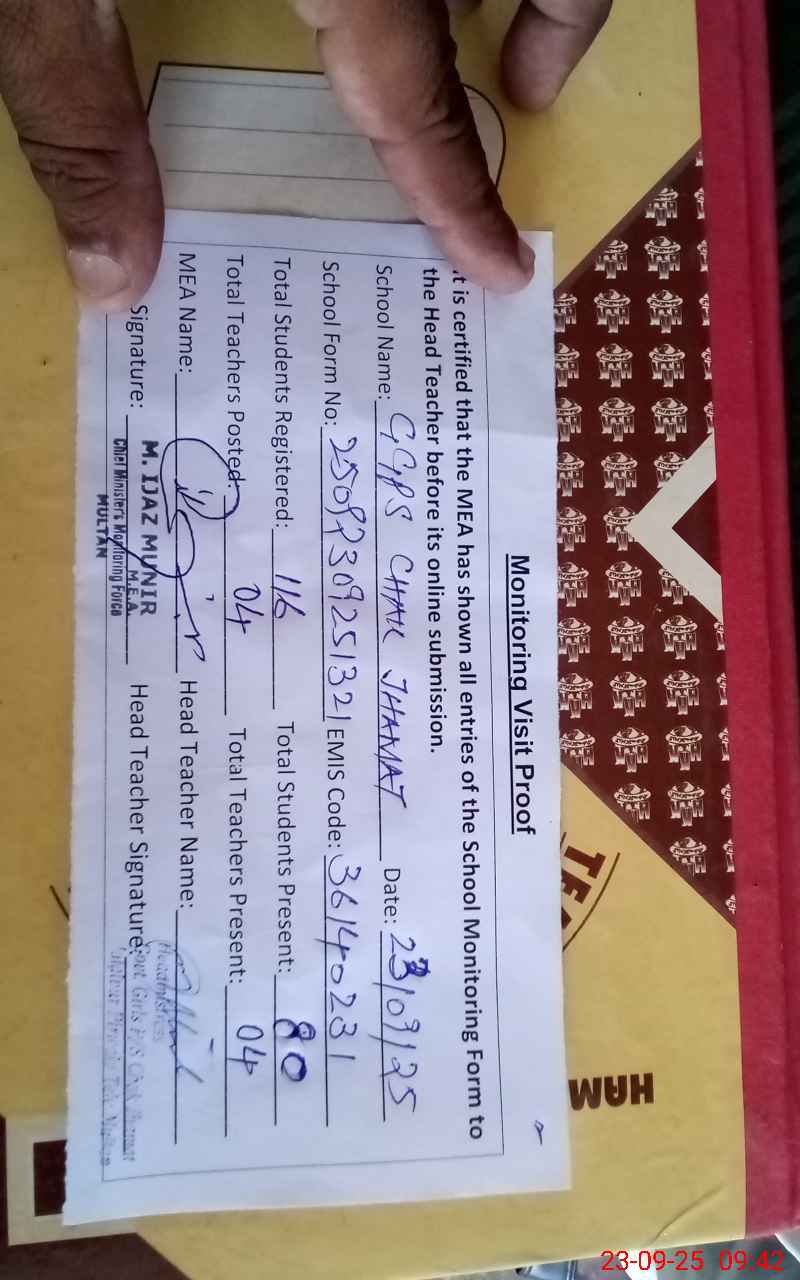 | EMIS Code: 36140231 | Name of School: GGPS CHAK JAHAMAT | |||